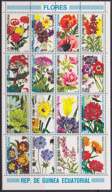 Цветы. Малый Лист 16 марок.