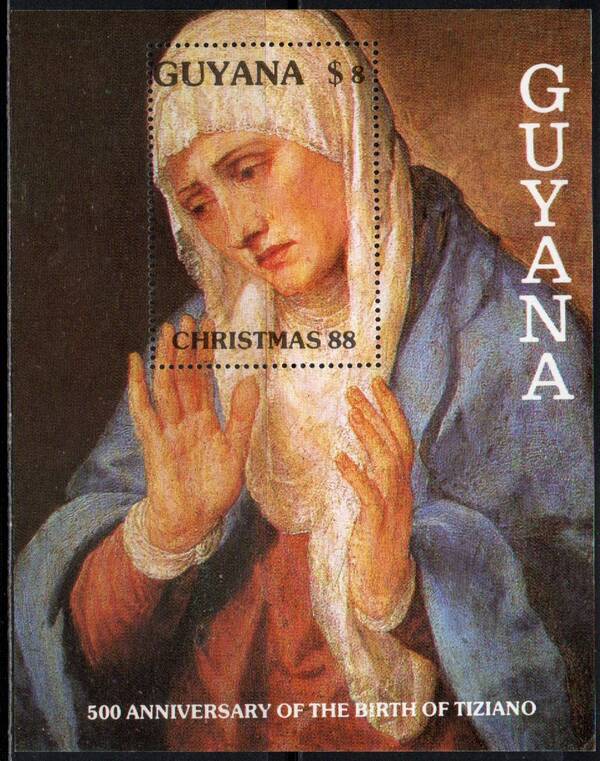 8 $. Тициан ( 1577-1640 ), Мадонна. Рождество. Почтовый Блок.