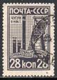 28 коп. чёрно-фиолетовая. Доменая печь. Точки в "С.ССР.". 1 марка.