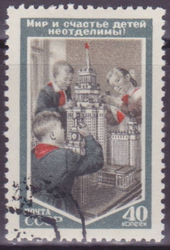 40 коп. Дети у макета Здания. 1 марка.