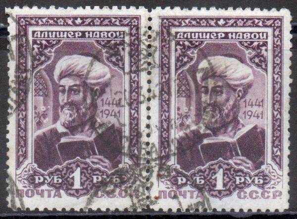 1 руб. Фиолетовая. Алишер Навои. Пара марок.