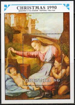 Рафаэль Санти ( 1483-1520 ), "Мадонна с вуалью". Рождество. Почтовый Блок.