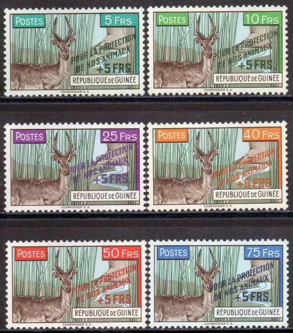 Надпечатка на марках № 71-76: "POUR LA PROTECTION / DE NOS ANIMAUX +5 FRS.". Серия 6 марок.
