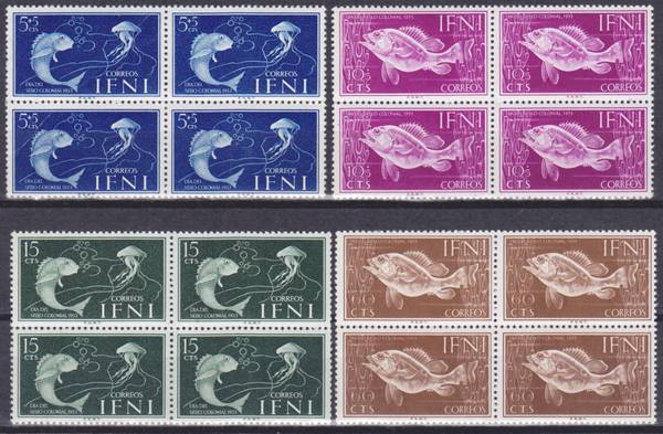 Морские Обитатели. Серия в Квартблоках ( 16 марок ).