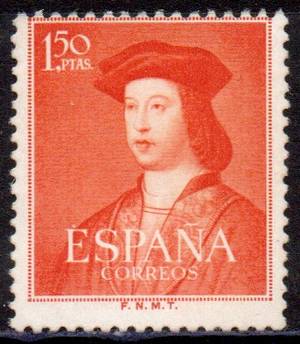 1.50 Ptas. Оранжевая. 500 лет со дня рождения Короля Фердинарда V ( I ). 1 марка.