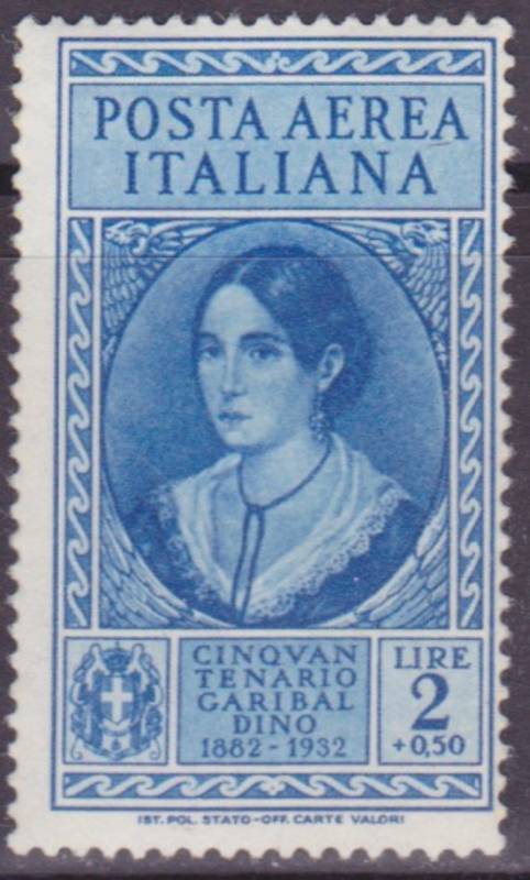 2 L. + 0.5 ( L. ) Анита Гарибалди. Портрет Гаэтано Галлино ( 1804-1884 ). 1 марка.