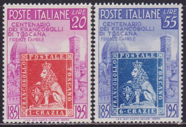 100 лет Почтовым маркам Тосканы. Серия 2 марки.