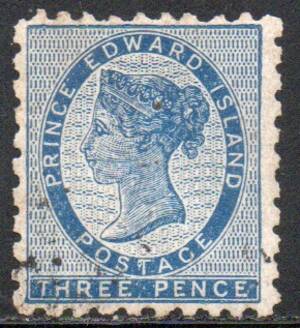 3 П. Тёмно-голубая. Королева Виктория ( 1819-1901 ). Острова принца Эдуарда. 1 марка.