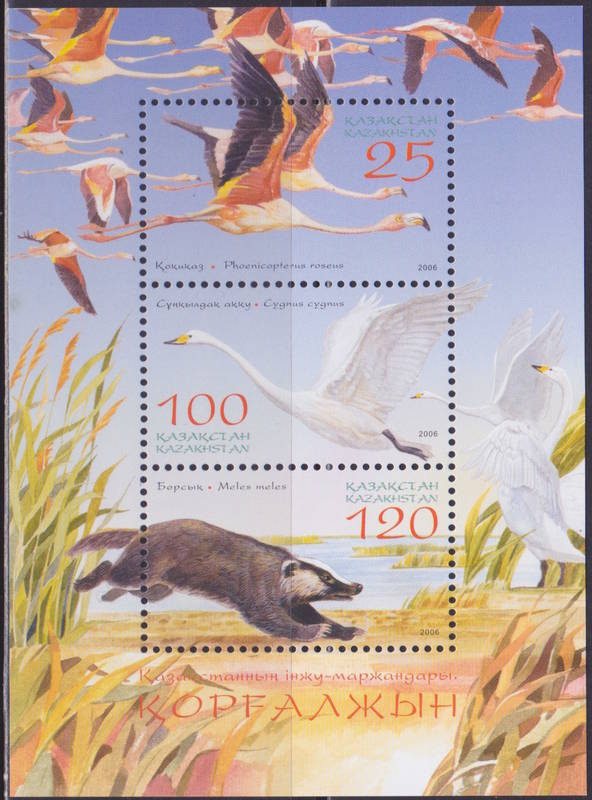 Птицы. Барсук. Национальный заповедник Кургальджино. Блок.