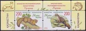Куницы. Красная Книга Казахстана. Пара марок с верхним полем.