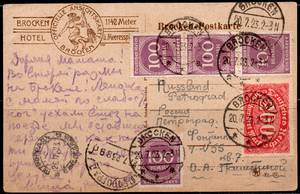 Почтовая карточка: Брокен - Петроград. Франкировано марками Германии.