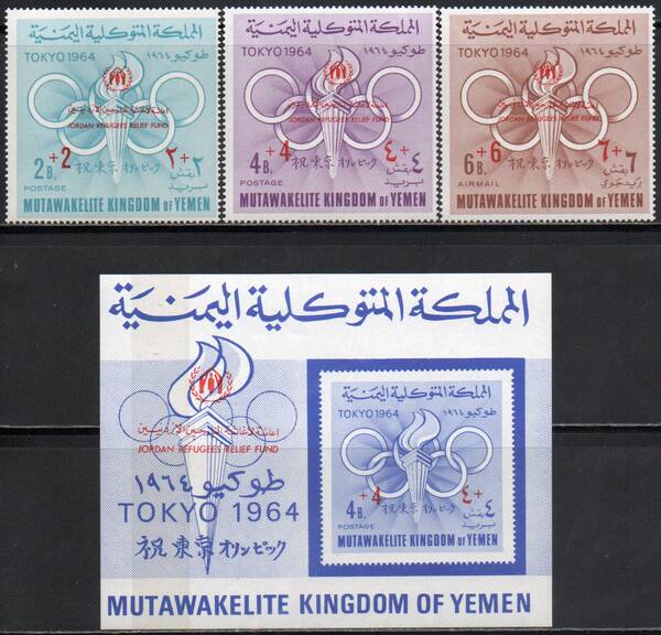 Летние Олимпийские Игры-1964, Токио. Красные Надпечатки. Серия 3 марки + Блок.