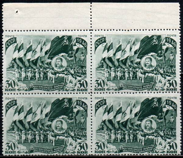 Глубокая печать. Перф. Лин. 12 1/2. Свой клей. Верхнее поле листа.