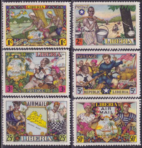 Поселенцы в Либерии. Серия 6 марок.