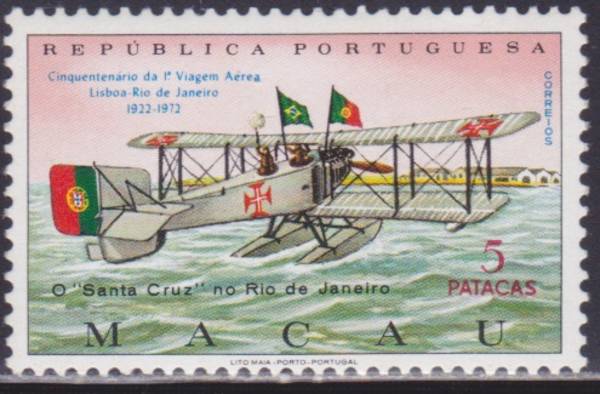 5 Р. 50 лет первому перелёту Лиссабон - Рио-де-Жанейро. 1 марка.