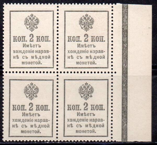 2 коп. Александр II Марки-Деньги. Без Цифр на лицевой стороне. Квартблок.