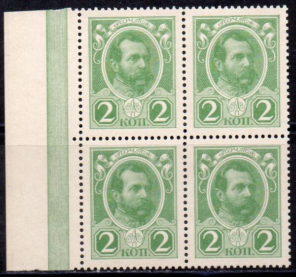 Контрольный знак на поле листа - полоса. Выпускались без клея.