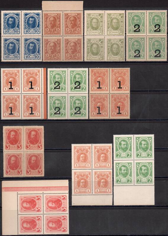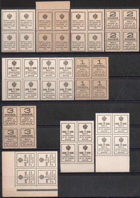Марки-деньги: типография. С зубцами. 11 Квартблоков ( 44 марки ).