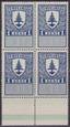 1 цент. Синяя. Штемпельная марка Эстонии. Квартблок с полем.