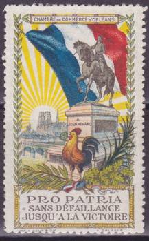 Памятник Жанны Д'Арк. Флаг Франции. Нацтонапльный Символ - Петух. 1 марка.