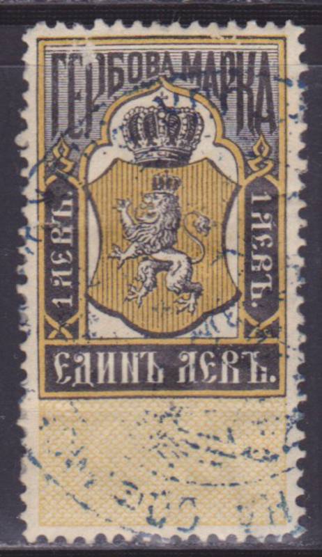1 Лев. Чёрная / Жёлтая. Гербовая марка. 1 марка.