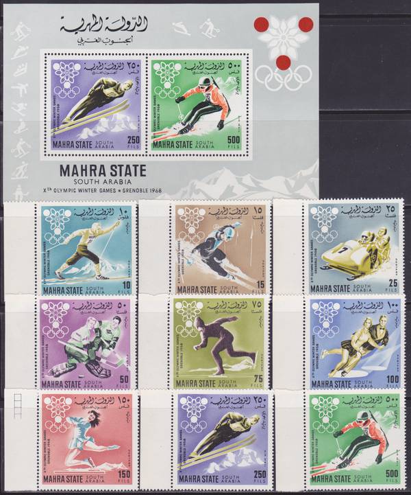 Зимние Олимпийские Игры-1968, Гренобль. Серия 9 марок + 1 Блок.