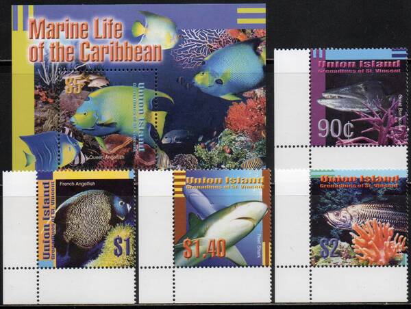 Морская Фауна Карибских островов. Почтовый Блок + 4 марки.