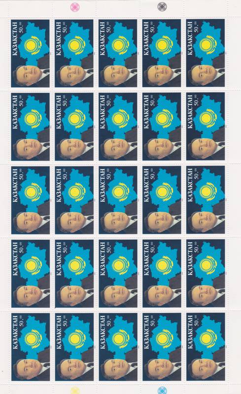 Президент Назарбаев и Герб Кахахстана. Полный Лист 25 марок.