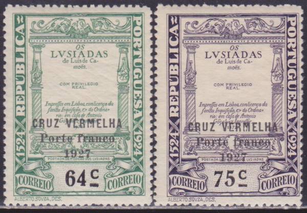Чёрная Надпечатка "CRUZ VERMELHA / Porte franco / 1927". 2 марки.