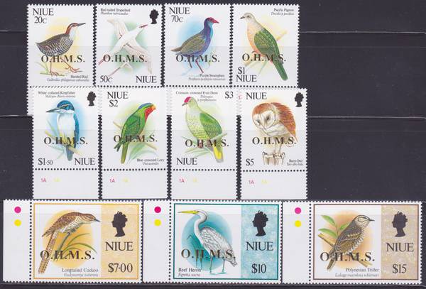 Птицы. Золотая Надпечатка " O.H.M.S ". Серия 11 марки.