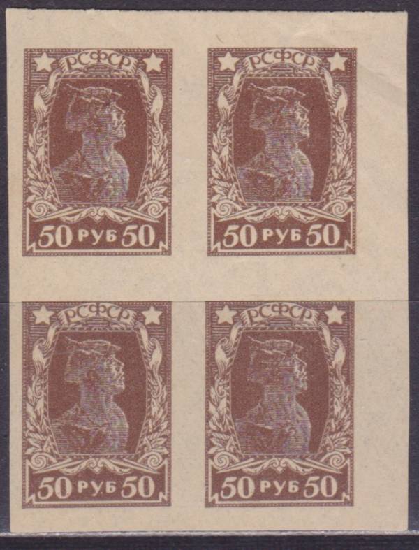 50 руб. Коричневая. Красноармеец. На Жёлтой Бумаге. Квартблок.