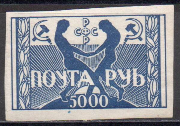 5000 рублей. Синяя. Литография. Без Зубцов. Свой клей.