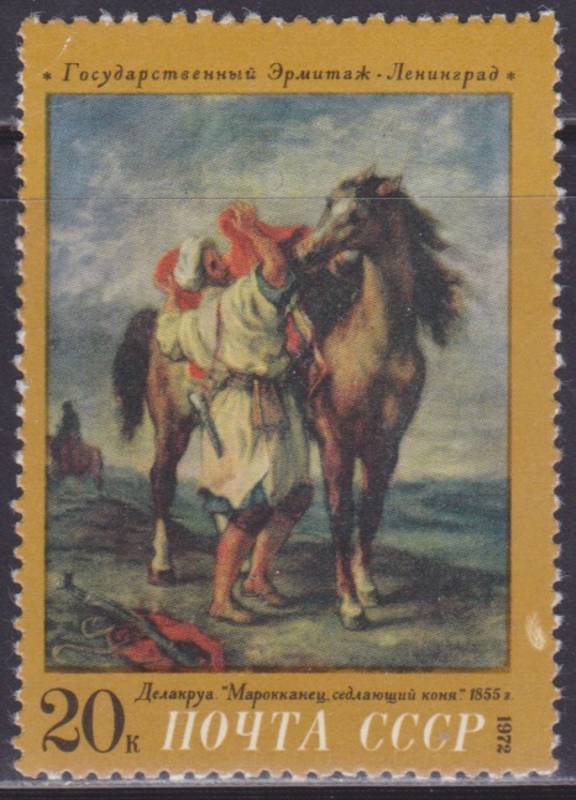 20 коп. Делакруя " Мароканец ...". Дефект фона в правом нижнем углу. 1 марка.