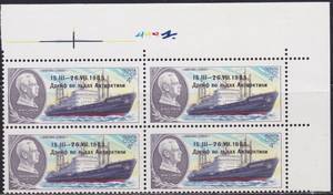 4 коп. Полярный Дрейф "М.Сомова" - "Чайка" под "СССР". 2-ая марка в Квартблоке.
