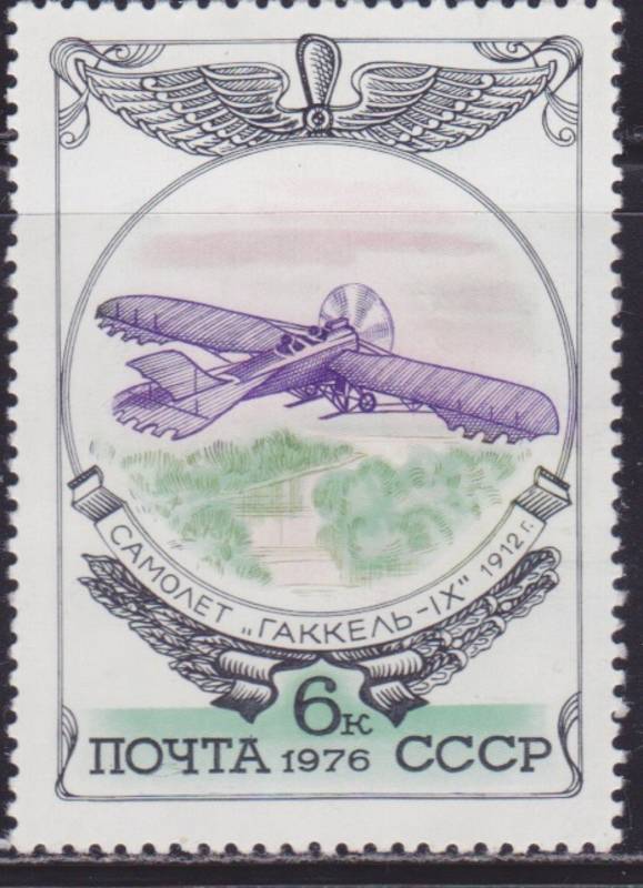 6 коп. Моноплан "Гаккель-IX": "Обрубленный" хвост. 1 марка.