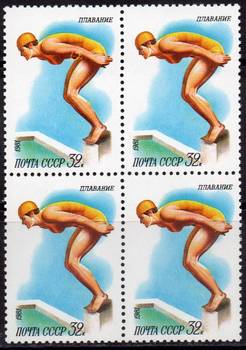 32 коп. Плавание. "Порван Купальник". 1-ая марка Квартблока.