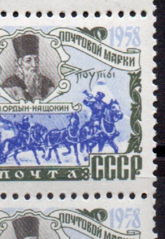 Дефект "1" в "1958" - 1-ая марка, дефект "5" в "1958" - 4-ая марка. Дефект "5" в "1958" - 9-ая марка.