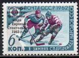 6 коп. Хоккеисты-чемпионы мира и Европы. Надпечатка "1" под "о", "м" под "мп". 1 марка.