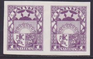 1 сантим. Фиолетовая. Белая бумага. Литография. Водяной знак " + ". Беззубцовая пара. Пробы - выпускались без клея.