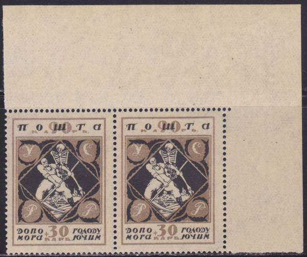 90 + 30 карб. Украинский ПОМГОЛ. Абкляч Фона. Угловая пара марок.