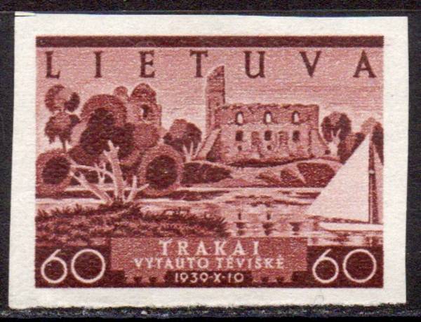 60 c. Проба: Кирпично-красная. Город Тракай. 20-летие Литвы. 1 марка.