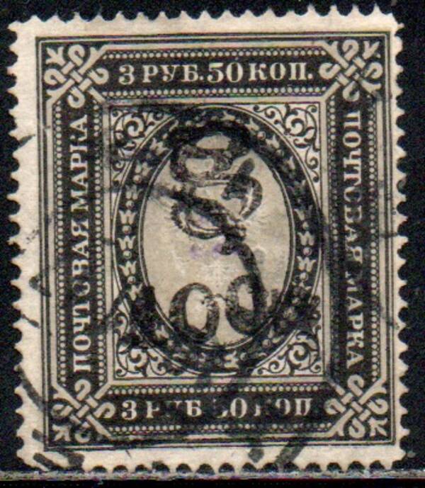 Чёрная надпечатка "100 р." на марке 3 руб. 50 коп. ( № 53А ). 1 марка.