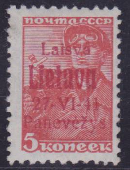 Красная типографская надпечатка: " Независимая Литва 27 IV 1941 Паневежис ".