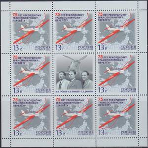 75 лет рекордному трансполярному перелёту. Лист художественный.