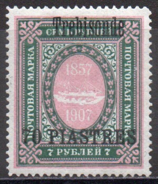 Надпечатка "Trebisonde 70 PIASTRES" на 7 рублях. 1 марка.