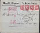 Заказное отправление 1914 года: С.-Петербург - Ганновер. Машинные штемпеля.