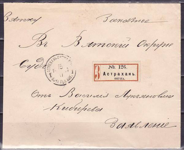 Письмо франкировано марками Российской империи 7 и 14 коп. 1889 года - горизонтальное верже. Перф. Рам. 14 : 14 1/2.