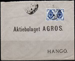 Почтовое отправление: Почтовый вагон - Ханго. Франкировано марками Российской Империи.