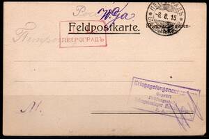Штемпель: "Петроград -8.8.1915 * ОТД.ДОСТ.ВЫСОЧ.КОР." Штемпель: "Д.Ц. ПЕТРОГРАД".