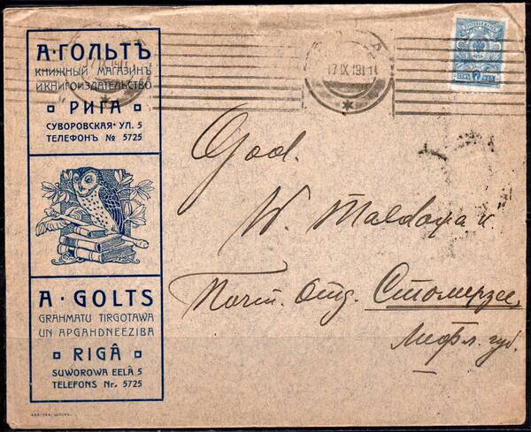 Машинный штемпель: "Рига 17 IX 1911". Штемпель прибытия: "Стомерзее Лифл. 18 IX 1911".